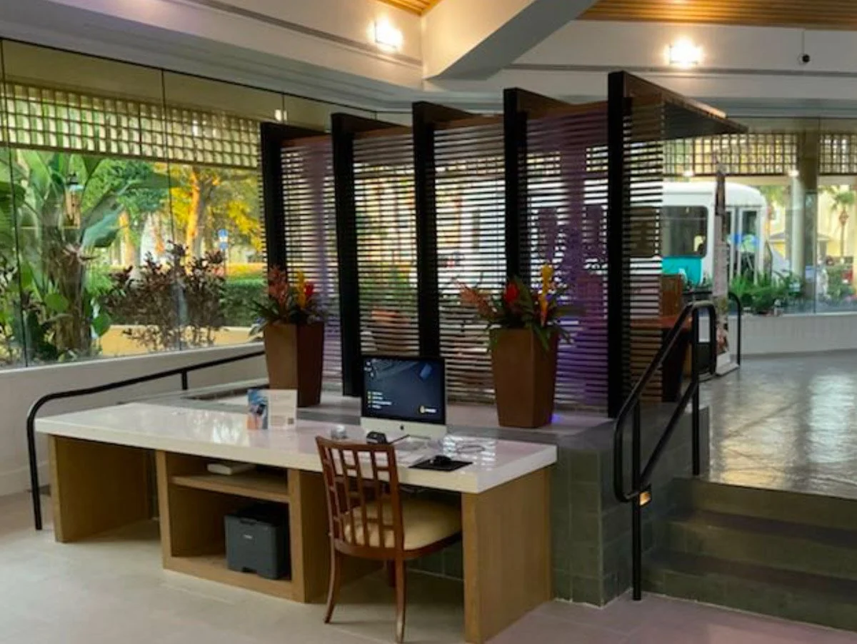 Collaborating with Schoenfelder Renovations, who was the general contractor, our team at KCI Works fabricated the new welcome desk in the main lobby, the waiting area divider wall, TV wall, business center desk, and cantilevered wooden slat wall. Through these ongoing property updates, Marriott Vacations Worldwide strives to build long-lasting relationships with their customers and associates to help them live their lives to the fullest.